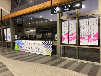 嵯峨中パレード 幟・横断幕 主要駅での展示