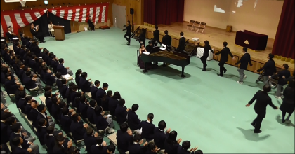 3年生による合唱,東京藝術大学の学生さんによるリサイタル,十文字幻齋さんの舞台上のご様子です。