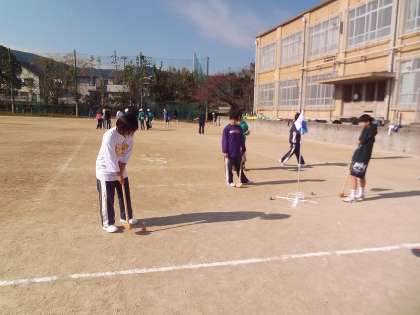 この大会は,今年で35年目を迎える歴史ある大会です。事前に申し込みのあった生徒120名が参加し,教職員チームと合わせて22チームがグラウンドゴルフを楽しみました。生徒たちは,日頃あまり話す機会のない地域の方々ともたくさん交流ができました。またゲームの中で,たくさんのいい笑顔を見ることもでき,充実した1日となりました。ありがとうございました。