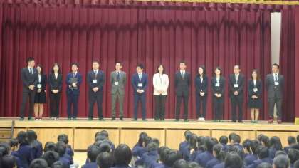生徒会からのアピールの後,校長先生から学級担任等発表がありました。学年担当,一丸となって学年の生徒たちとともに頑張っていきたいと思いますのでよろしくお願いいたします。