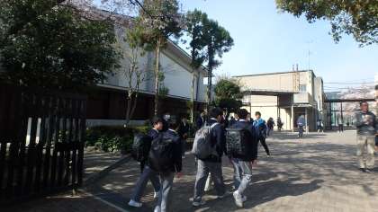 見納めかもしれない桜がチラチラ舞う中,今朝も生徒会の生徒達が元気に挨拶運動をしていました。時間ぎりぎりに来る生徒達は,朝読書に間に合うように走っていました。余裕を持って登校するようにしましょう。