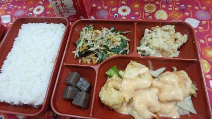今日は「えびマヨ」でした。「えびマヨ」って言いますが,マヨネーズだけではなく,ケチャップ,ヨーグルト,水飴で作られています。味のバランスのとっても良いソースで大変美味しくいただきました。