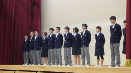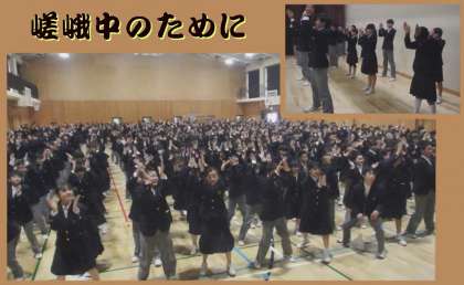 そのあと,全校生徒で「嵯峨中のために」を行いました。対面式のときは,1年生は2,3年生がするのを見ただけでいっしょにできなかったので,今回が初めてでした。