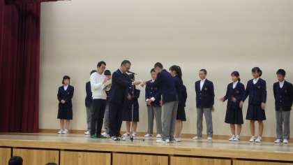 激励会の次に,平成31年度前期の学級委員になった人に対して,認証式が行われました。代表の3年1組の生徒達が壇上にあがり,校長先生から一人ひとり,認証状が手渡されました。嵯峨中学校では,とても活発な委員会活動が行われています。ますます活発で有意義な活動となることを期待しています。