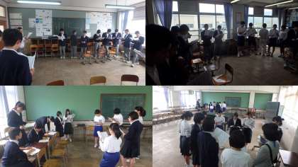 歌う歌は,『つなぐ 幸せの空に』。平成30年度の3年生が,修学旅行で訪れた長崎での学び,感じた重みを平和につなげるために作った歌です。