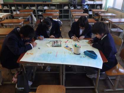 家庭訪問中,放課後の時間を活用して1年生では教室に掲示する学級目標を作成しています。