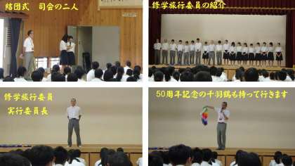 修学旅行中の各式は,修学旅行委員のセレモニー係が担当します。今日の結団式も,修学旅行委員セレモニー係が担当しました。