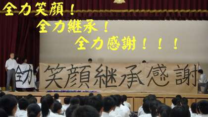 2日目は「全力継承」です。平和学習や龍踊会交流があります。平和を願う心を受け継ぐこと,伝統を受け継ぐことを意識する1日にしたいものです。何事にも全力で頑張る姿勢を先輩から「継承」し,レクリエーションも「全力」で楽しみたいですね。