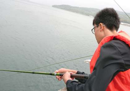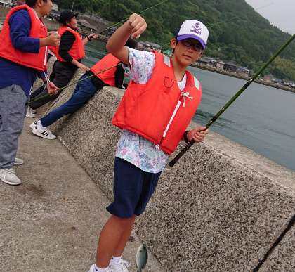 港釣りグループでは、インストラクターの方のご指導のもと魚釣りをしています。釣りあげて喜んでいます。