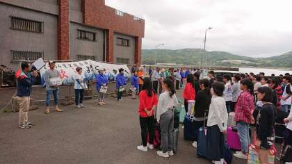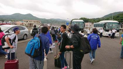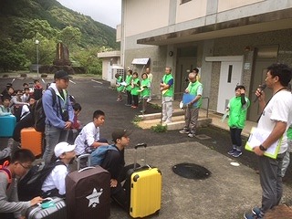 対面式の最後には,民家の方と対面。車に荷物を乗せ,各家庭に向かいました。