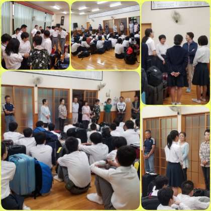 離村式では、生徒代表の挨拶、教員挨拶、地区の代表の方の挨拶、と続き、全員でお礼を言って終わりました。