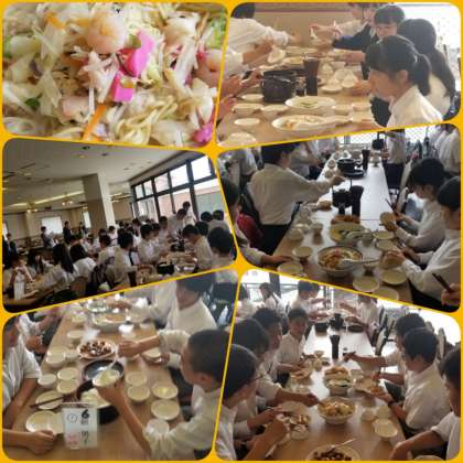 昼食は、ちゃんぽん、中華スープ、中華風肉団子、春巻きなどでした。