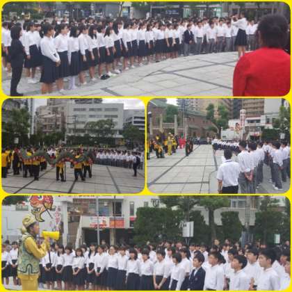 体験のあとは、龍踊会の方々のご希望で、「つなぐ」をアカペラで披露しました。