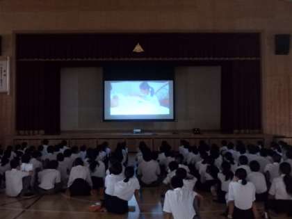 2年生の4時間目では,チャレンジ体験のまとめとして,みんなの体験の写真や動画をもとに作成したムービーを体育館で鑑賞しました。チャレンジ体験が終わり1週間が経ちましたが,改めてチャレンジ体験での経験を振り返ることができたのではないでしょうか。