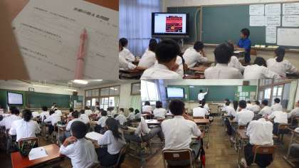 修学旅行中に出たごみの話題をきっかけに,様々な人が訪れる観光地が抱える問題について考えました。