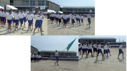 生徒会旗掲揚のときには,校歌を斉唱しました。朝一番だからか,まだまだ元気が出ていませんが,きっとプログラムが進むにつれて元気もでてくることでしょう。