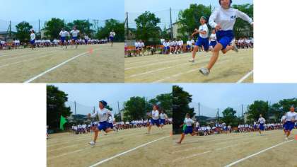 プログラムは,150m走です。スタートして,トラックを1周走ってゴールです。