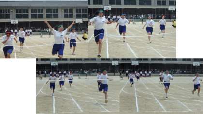 本部席の前を,全速力で駆け抜けてくると,ゴールしても止まりません。それくらい思いっきりゴール目指して走っていました。