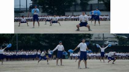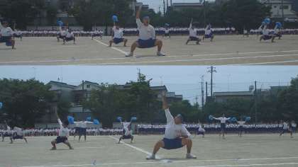 青組の応援合戦の様子の続きです。団長がしっかりと声を出し,大変まとまりのある応援でした。最後のガッツポーズもばっちり決まっていました。