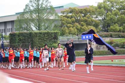 4月29日,西京極陸上競技場において,春季総合体育大会の開会式が盛大に行われました。本校からも100名の生徒が参加し,生徒会旗と昨年度優勝盾を先頭に,みんなが一体となった,すばらしい行進で入場しました。