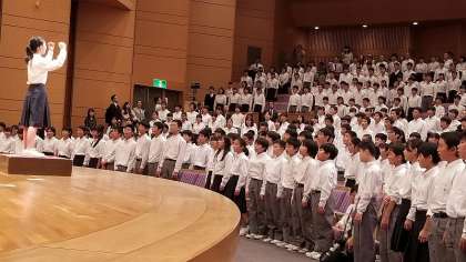 全校がひとつになり、ホールに美しい歌声が響きわたりました。