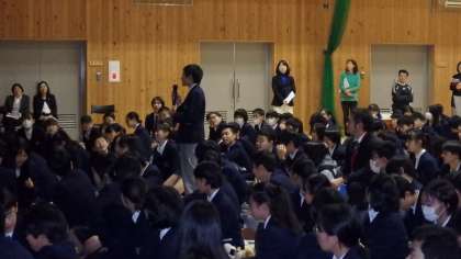 11月26日火曜日の5・6時間目に,嵯峨中学校体育館にて,社会保険労務士と選挙管理委員会コラボ授業が行われました。「よりよい社会の実現に向けて,きみは選挙で,どんなふうに一票を投じるのか」というテーマの授業です。
