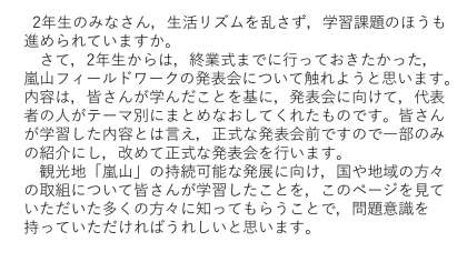 2年生の皆さんへ