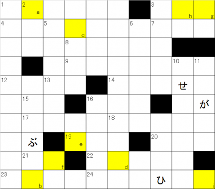 ヒントをもとにたて,よこに言葉を入れて,a〜iに文字を入れてできる文は何?