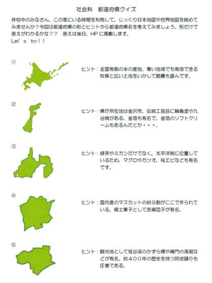 社会科から都道府県クイズを出題してもらいました。