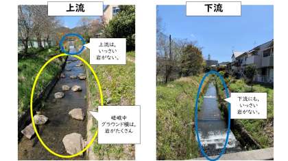 有栖川は,きれいに整備された川なのですが,意外と大きな岩がたくさんあります。…と思っていたのですが,よくよく見れば,岩があるのは嵯峨中のグラウンド横の部分だけ。嵯峨中から見える限り,上流にも下流にも岩はありません。