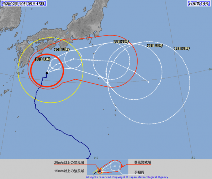 下記の台風進路予想図は,気象庁のホームページより掲載したものです。