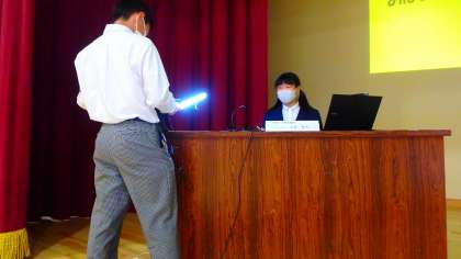 次は新聞・プレゼンテーションです。各班で新聞を書き,それをもとに報道担当が発表しました。