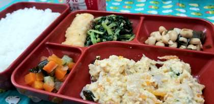 今日の給食は,親子とじでした。親子とじに使われていたねぎは,京都産の九条ねぎでした。ご飯と一緒に食べて親子丼風にした人もいたと思います。大根葉は鉄やカルシウムが豊富です。鰹節を一緒にいためて風味豊かな味でした。