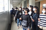 明日の入学式を前に、今日の始業式の午後からは新入生が登校し、クラス発表を見て、中学校での自分のクラスを確認しました。