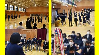 生徒たちにとって,2年ぶりの応援合戦となりますが,先輩たちが代々引き継いできた伝統を,自分たちの手でやり遂げるために,クラスで選ばれた応援リーダーたちが,縦割りで3色(赤・青・緑)に分かれてで頑張ります。3年生は1年生で学んだ先輩たちの姿から懸命に高みを目指して頑張ってほしいと思います。1・2年生はその3年生から刺激を受けて頑張ってほしいと思います。
