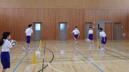 まずは畑の水やりをし,とうもろこしの人工授粉,ナスとピーマンの収穫をしました。とっても立派なピーマンがたくさん採れました。その後,体育館に移動し,話し合って決めた活動をしました。バレーボール・中あて・しっぽとり・キャッチボールと思う存分に楽しみました。