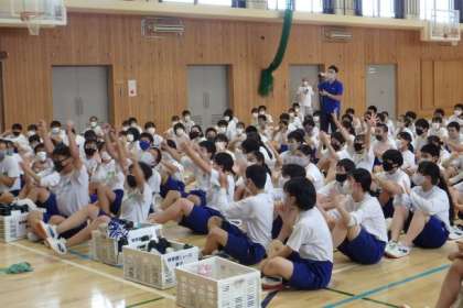 体育大会<3年生の部>バンブーサーフィンと閉会式(7月9日)