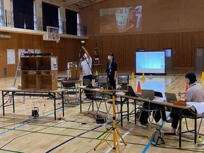 「嵯峨中フェスタ」舞台発表(学年別)と体育館から校内の各教室への配信に向けて,準備を1週間以上前から少しずつ進めてきました。昨晩も遅くまでセッティング,リハーサル,調整と繰り返してきました。下記の写真は体育館が,スタジオのようにセッティングされている様子です。