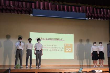 引き続き,1・2枚目は,1組,6組の発表のようすです。また,発表班以外のスライドも展示鑑賞時間に上映による紹介を行いました。