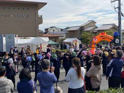 昨年度に引き続き,今年度も新型コロナウイルス感染拡大により,部活動は制限を余儀なくされました。先日の嵯峨中フェスタでは,緊急事態宣言解除から練習が再開したものの練習が十分に行えず,夏に無観客で行われた吹奏楽コンクールでの演奏を聴いてもらうしかなかった吹奏楽部が,24日(日)のJR嵯峨嵐山駅前広場で行われた「HAPPY HALLOWEEN 嵯峨嵐山」(嵯峨商店街主催)にお招きいただき,発表の場をいただきました。