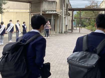 生徒会本部役員の任期満了に伴い,本日朝より生徒会本部役員選挙の選挙活動が始まりました。生徒会長をはじめ各役職の立候補者も出そろい,校門に集合した各候補は,登校してくる生徒に向けて,元気なあいさつと共に支持を訴えていました。今週末までの選挙運動期間を経て,11月1日(月)午後に,集会形式ではなく,各教室を回る形での立会演説会を実施した後,投票および即日開票が行われ、翌日の朝に結果発表されます。