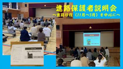 進路保護者説明会は,11月〜3月の進路日程を中心に,進路指導主事から注意・意識してもらいたいことを説明いたしました。