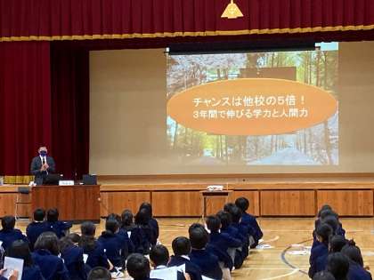 本日1年生では,4限進路エスの時間に、公立高等学校を代表して京都府立北桑田高等学校と私立高等学校を代表して京都文教高等学校より先生をお招きして,それぞれの入試制度の概要と各校(公立・私学)の特色について,今後,自分の進路を考える上での貴重なお話しをしていただきました。両校とも大学進学や就職など卒業後の進路や部活動での実績等に目をみはるものがあり,熱心にメモをとる生徒の姿も印象的でした。両校の先生には,お忙しい中,お時間を作ってお話いただき,本当にありがとうございました。