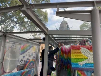 平和記念公園内にある「原爆の子」の像の前で,平和セレモニーを行いました。修学旅行実行委員が中心に千羽鶴を奉納し,黙祷を捧げました。