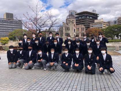 修学旅行1日目「平和公園クラス写真」(11月23日)