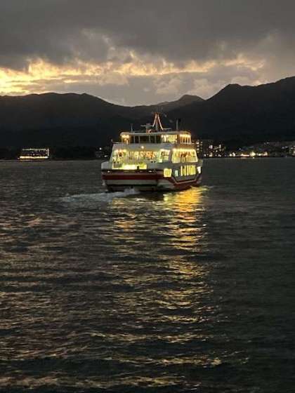 楽しかった宮島を後に,フェリーで宮島口へ。バスで宿泊するホテルへ向かいます。