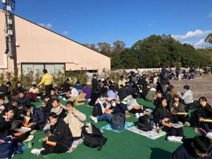 ネスタホールの屋上テラスで,温かい陽ざしの中でお弁当をクラスごとに食べています。昼食が終われば,班別行動です。楽しみですね。