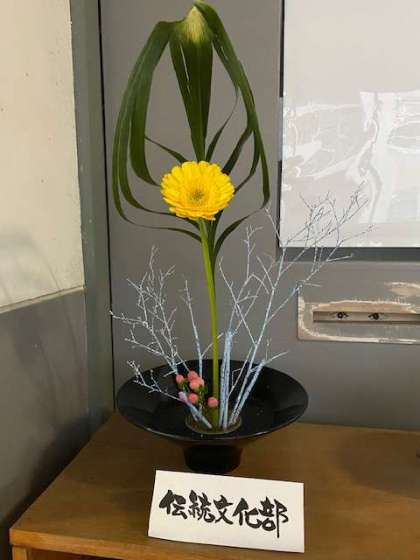 先ほどの記事で,伝統文化部の11月のいけばなを紹介しましたが,いつも校長室の前にもいけばなを飾って頂いています。校長室に来られるお客様をお迎えしてくれています。本当にありがとうございます。