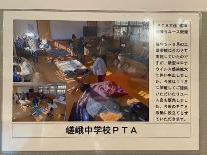 イオンモールKYOTOのSakura館3階に「PTAフェスティバル」の写真展が展示されています。本校からも先日行った「標準服等のリユース販売」の様子を発表しました。