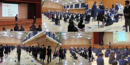 2年生の冬休み前学年集会では,2学期の振り返り・反省を行い,各クラスの反省点と改善点・3学期の目標を発表しました。